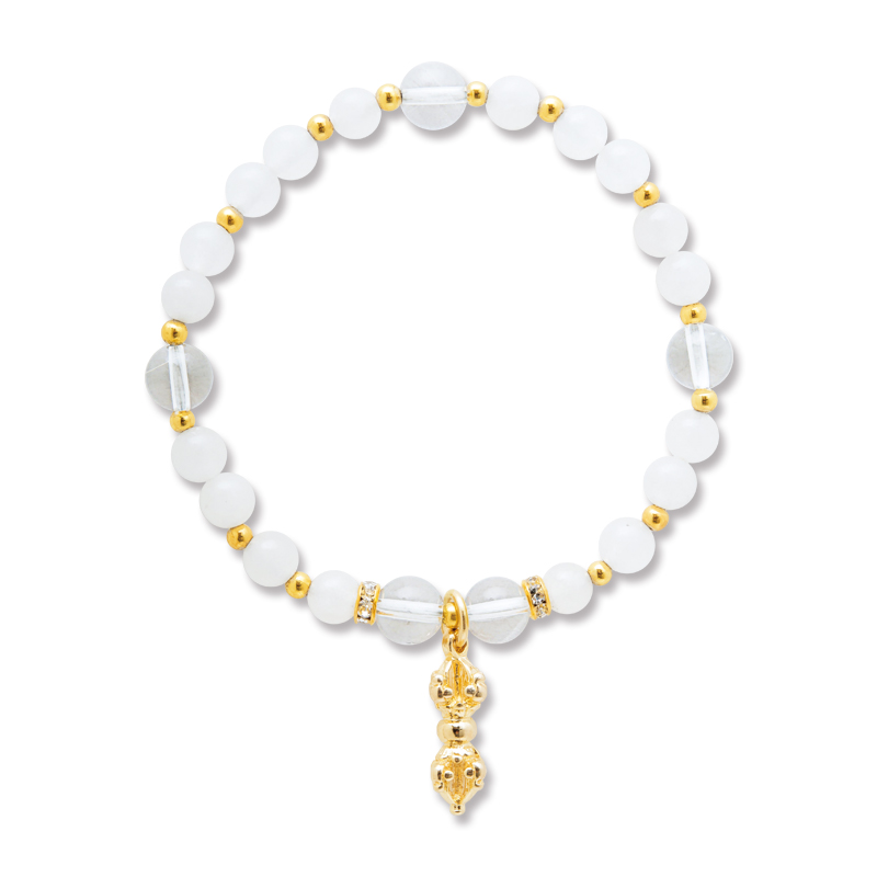 開運・お清めの伝道師、中井耀香先生完全監修!身につけるだけで心身を浄化し、幸運に導くブレスレットが登場です。お清めパワーの高い本水晶に、癒やしと調和をもたらすクォーツァイト、そして魔除け、厄除け、邪気払いに最強といわれる五鈷杵(ごこしょ)チャームをあしらった、本誌だけのスペシャル仕様のブレスレットです!