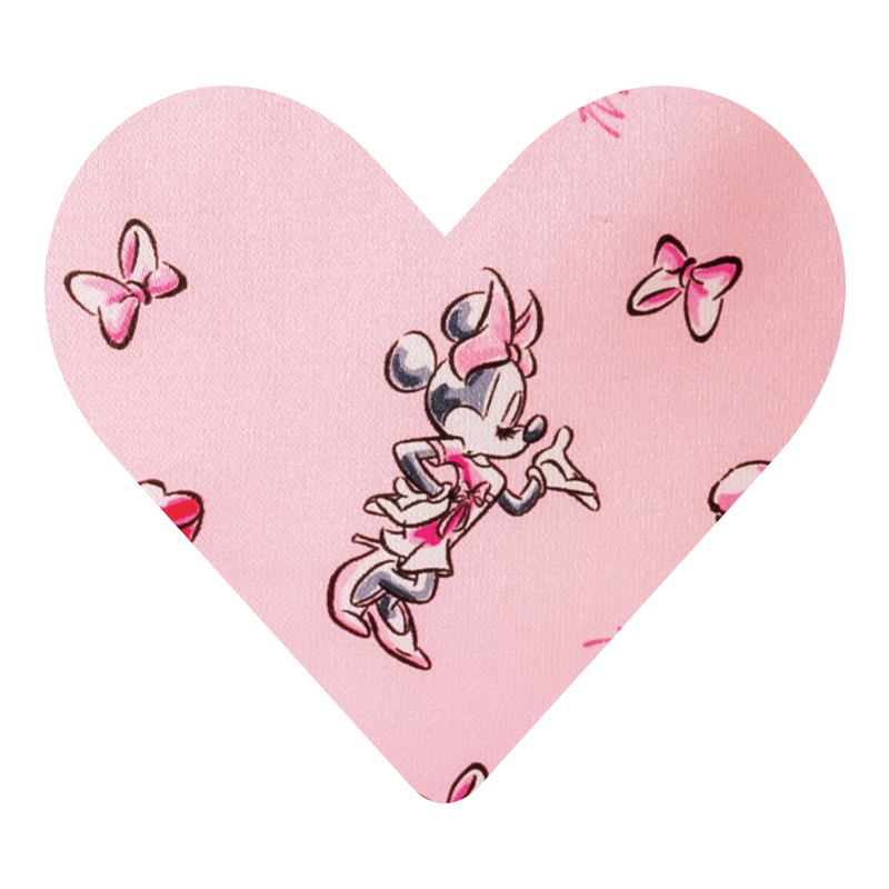 ミニーに加えてリボンやハート、マカロンをプリントしたキュートな総柄デザインです。