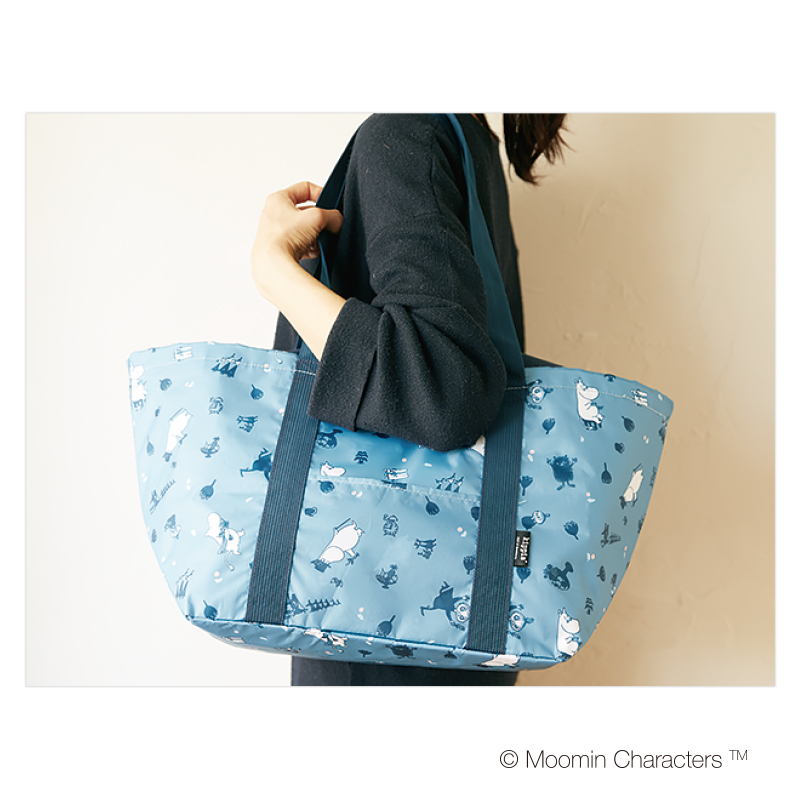 大人気のムーミンから、ビッグで使い勝手バツグンの保冷トートが登場です。さわやかなブルーに、人気キャラクターたちが楽しげな柄は、北欧デザインのテキスタイルブランドkippis(キッピス)とのコラボ柄。大容量で、レジカゴにセットもできる優れものです。小さく折りたためるから、いつものバッグにポンと入れて持ち運びもラクラク。内側には保冷剤を入れるメッシュポケットつき。日々のお買い物からレジャーまで、大活躍間違いなしです!