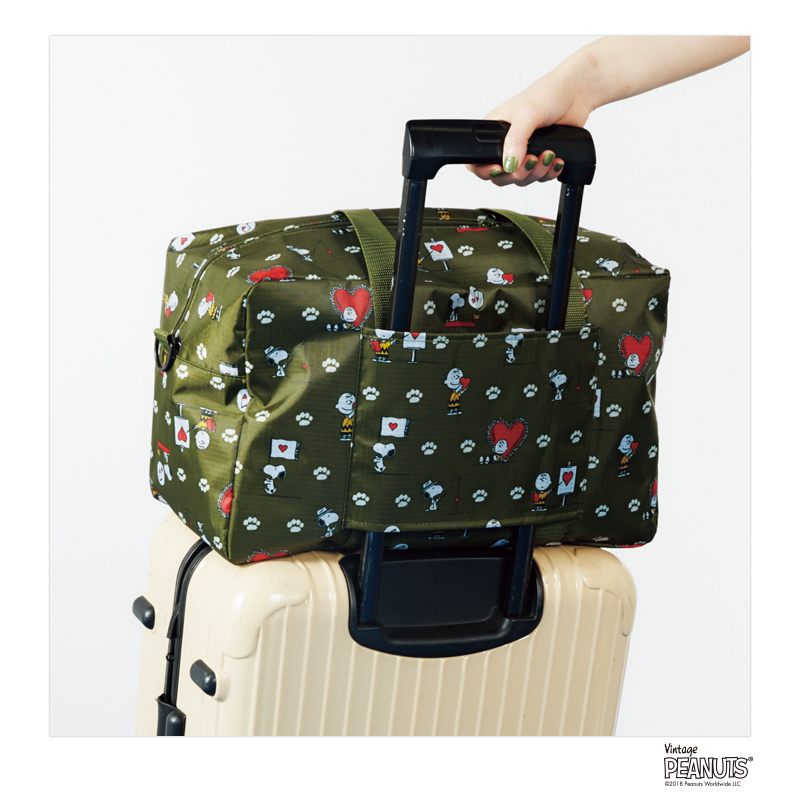 ピーナッツの人気キャラクター・スヌーピーとチャーリー・ブラウンの、“旅”をテーマにしたおしゃれなボストンバッグが登場!大容量のボストンバッグは2~3泊の旅行に大活躍します。ボストンバッグの後面には、キャリーケースの上にセットできるループが付いているのでさらに便利!旅行や荷物の多いときに重宝するボストンバッグで、スヌーピーたちと旅を楽しんでください!