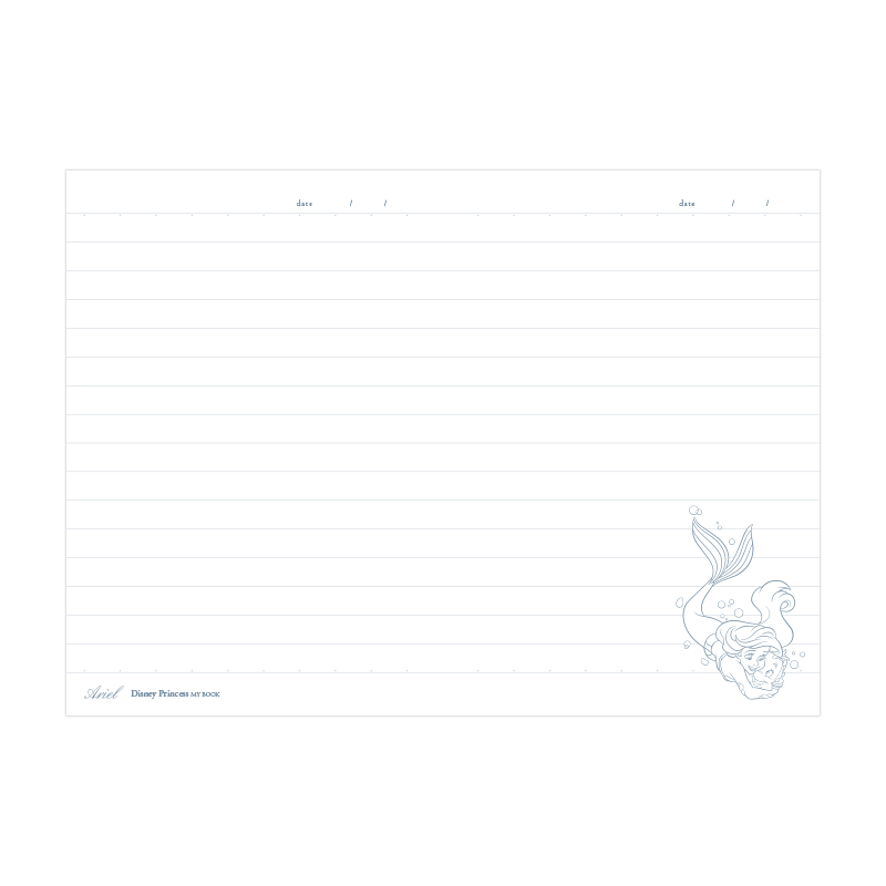 「リトル・マーメイド」のアリエル、「美女と野獣」のベル、「塔の上のラプンツェル」のラプンツェルなど、女性たちに絶大な人気を誇るディズニープリンセスのイラストを全編にあしらった文庫型ノートです。中身はイラストをあしらいつつもシンプルなデザインにし、ノートとしての使いやすさも追求しました。巻末にはプリンセスたちの名言集などファンに嬉しい読み物を掲載。