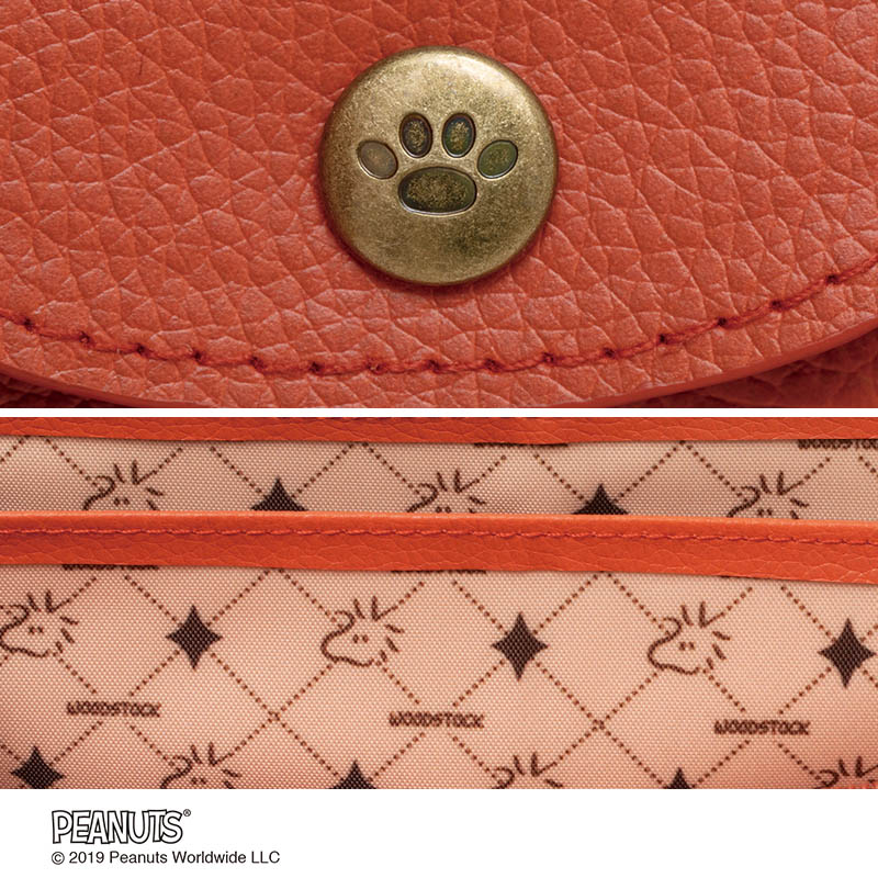 裏地はさりげないウッドストックのモノグラム柄なので中身も見やすい。