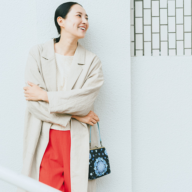 “万華鏡”柄をあしらった、シックで品のよいがま口バッグが登場。