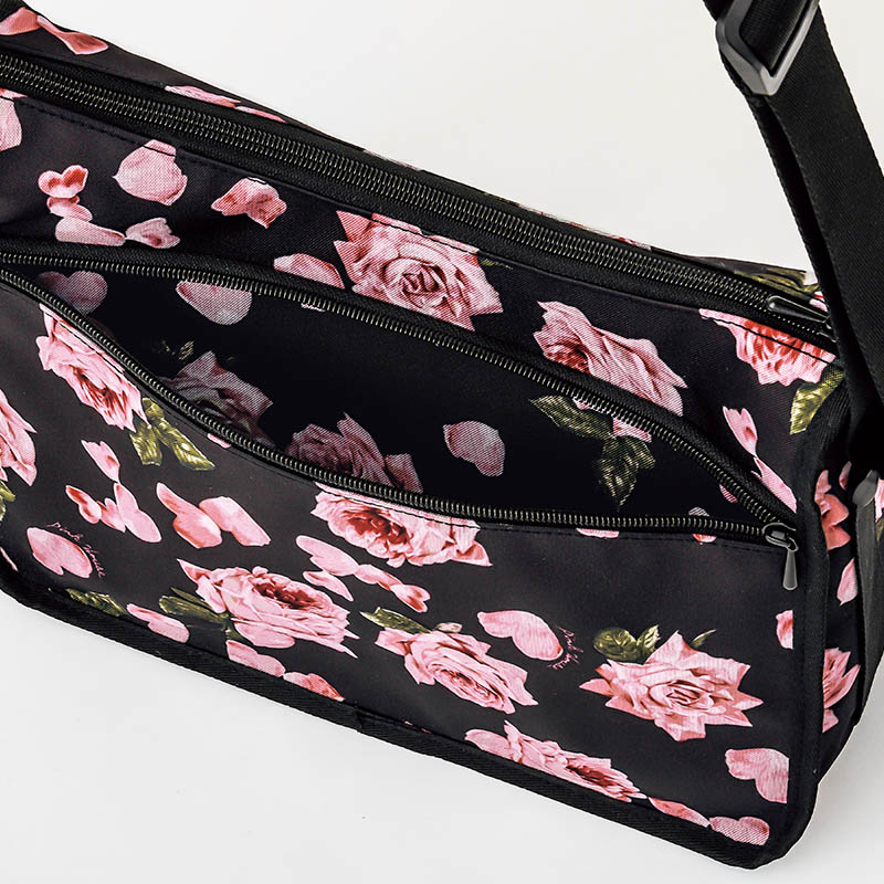 小物が迷子になりにくいローズ柄ショルダーバッグをお届けします。