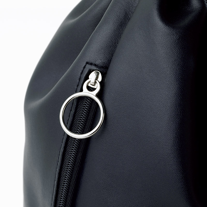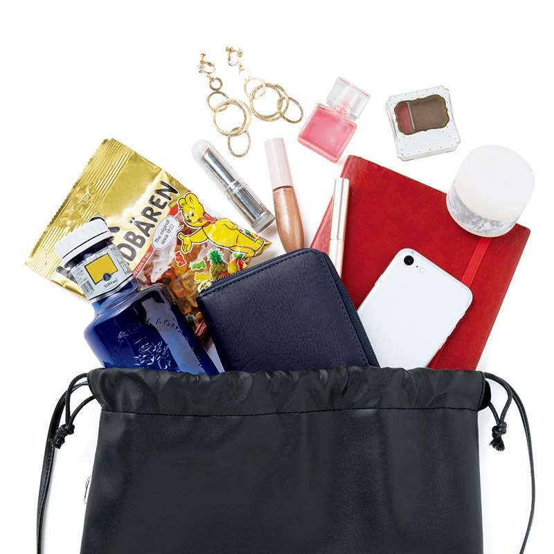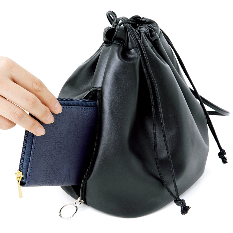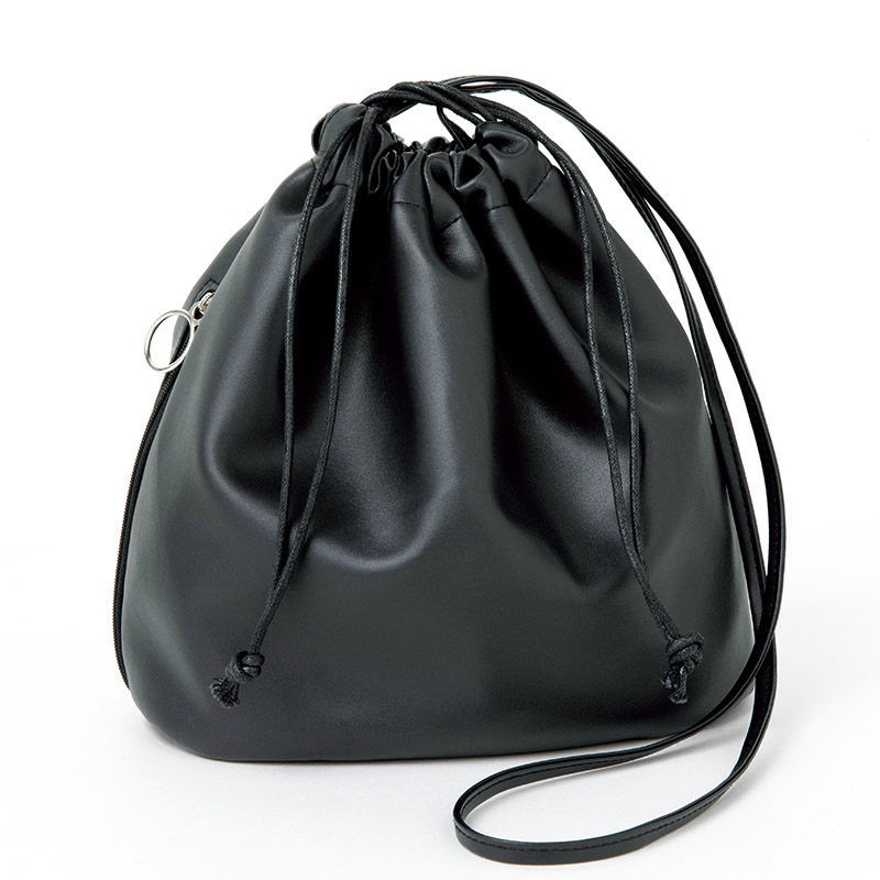 幅広いコーデに合わせやすい、ブラックカラーの巾着型バッグができました。