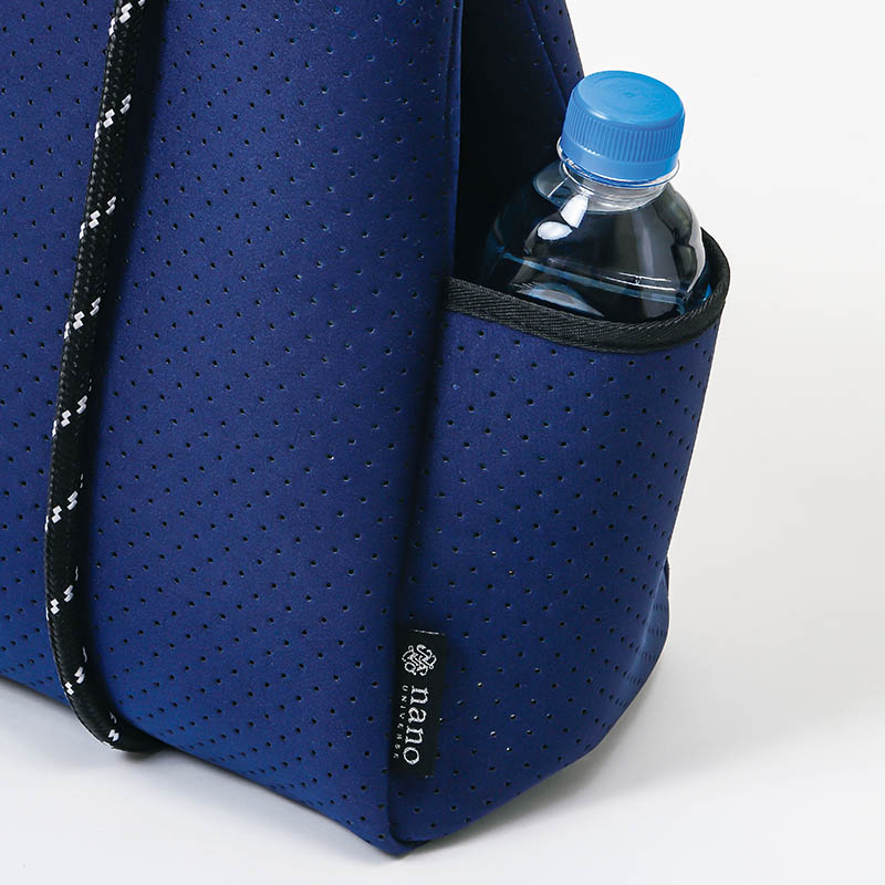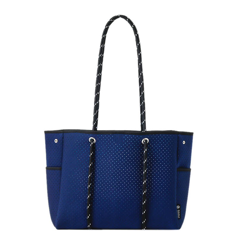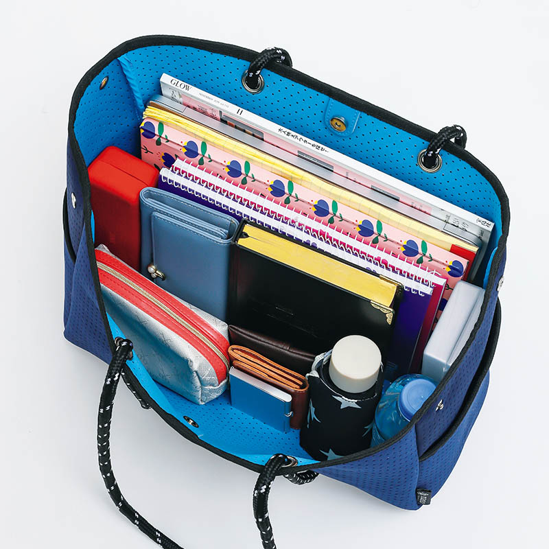 今流行の柔らかいウェットスーツ風の素材を使用したトートバッグ。