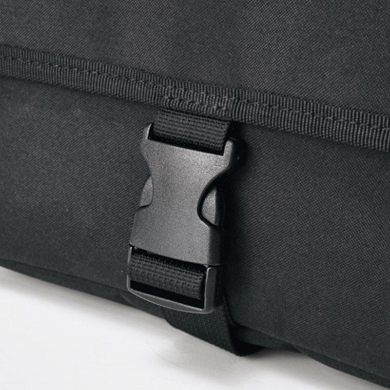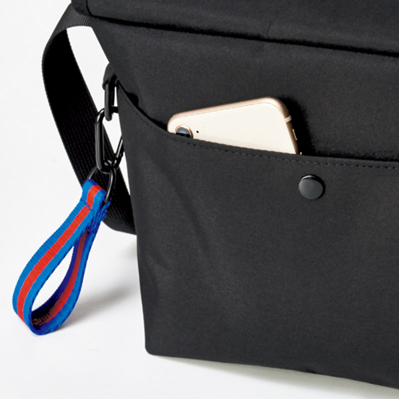 バックポケットやバックル仕様など、使い勝手のよい設計のメッセンジャーバッグ。