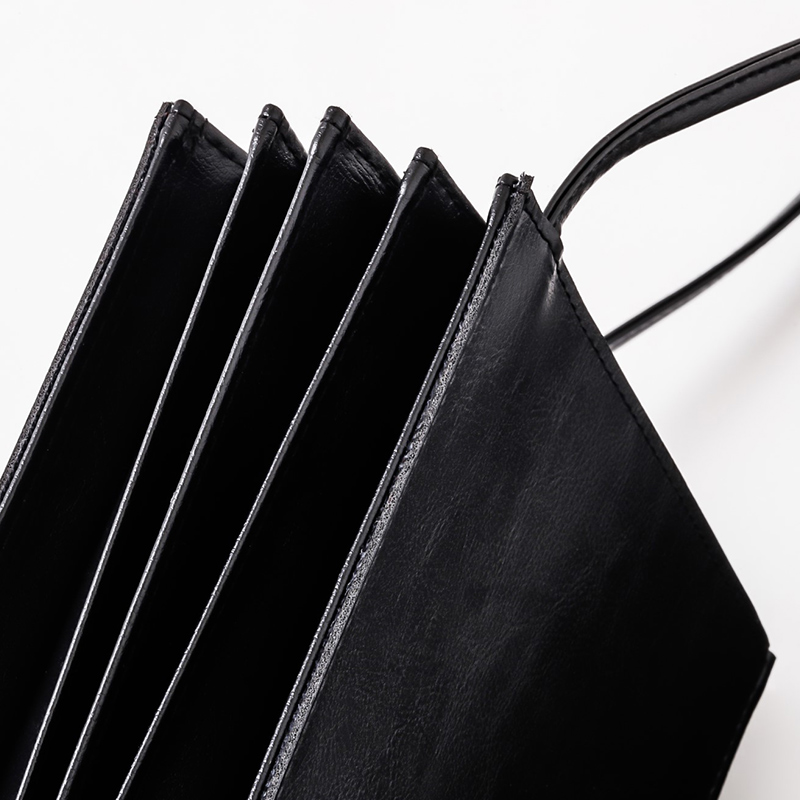 “オリガミプリーツ”を両サイドに施したスクエアショルダーバッグ。