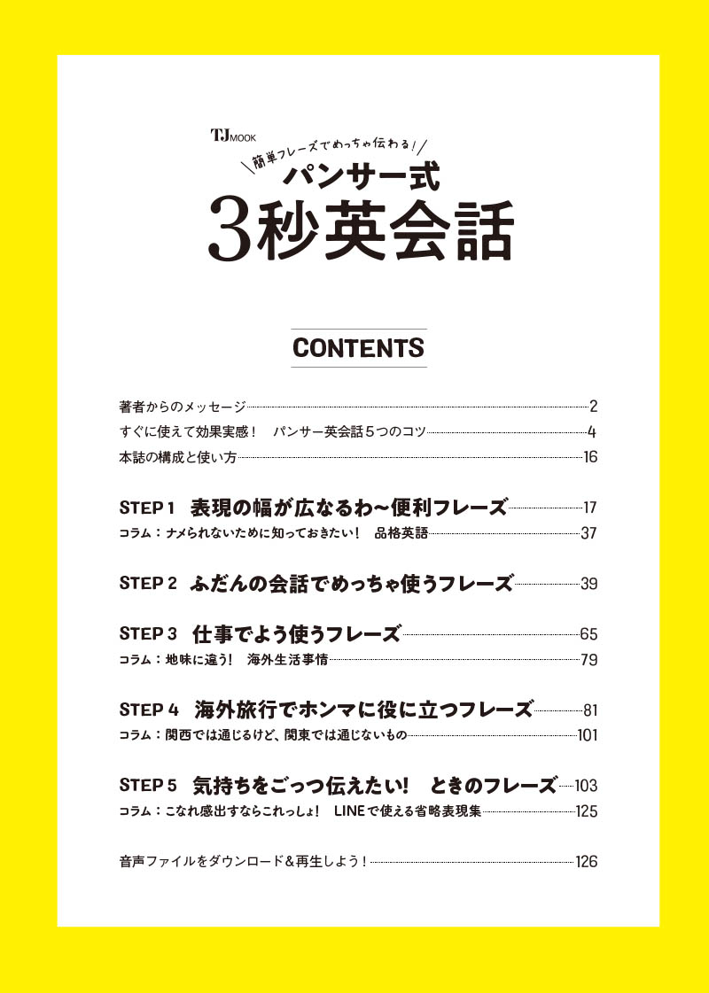 中学英語でできる英会話フレーズで大人気の英会話講師・パンサー戸川さんによる、簡単、実用的ですぐに使える! 英会話の教科書です。
