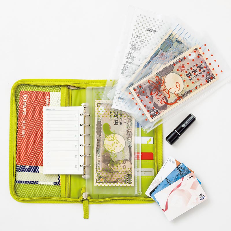 通帳やお金を入れて家計を管理するポーチに