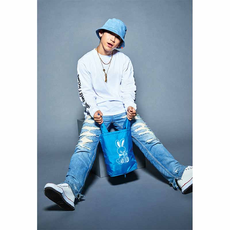 カラーはBLACKとBLUEの2色で、HONESTBOY®のアイコンであるウサギのキャラクターがプリントされています。マチが広いのでたっぷり収納できて、お弁当も傾きにくい便利なエコバッグです。また、たたんで底面のファスナーを閉めればコンパクトになり、持ち運びにも便利です。冊子ではEXILE NAOTOがHONESTBOY®やSTUDIO SEVENのアパレルを身にまとい、ブランドの世界観をビビッドに表現。永久保存の一冊となっています!