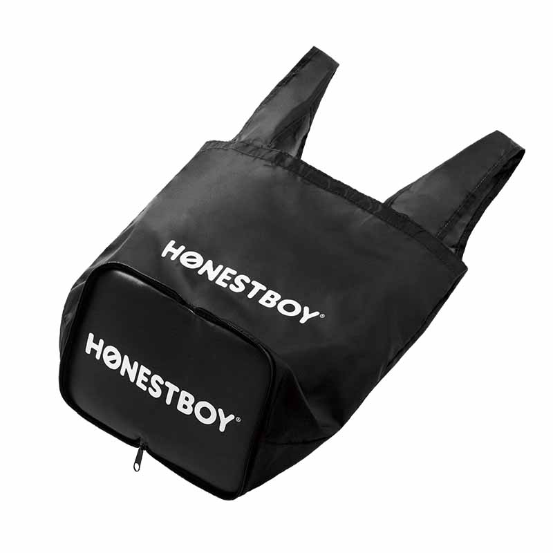 カラーはBLACKとBLUEの2色で、HONESTBOY®のアイコンであるウサギのキャラクターがプリントされています。マチが広いのでたっぷり収納できて、お弁当も傾きにくい便利なエコバッグです。また、たたんで底面のファスナーを閉めればコンパクトになり、持ち運びにも便利です。冊子ではEXILE NAOTOがHONESTBOY®やSTUDIO SEVENのアパレルを身にまとい、ブランドの世界観をビビッドに表現。永久保存の一冊となっています!