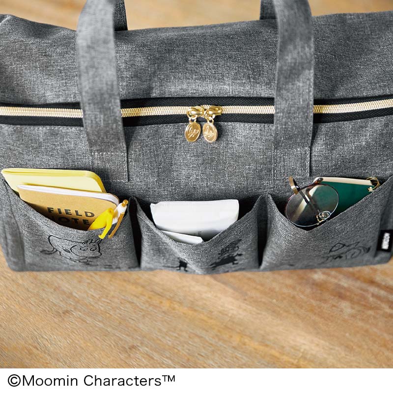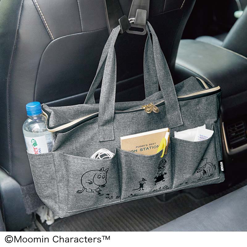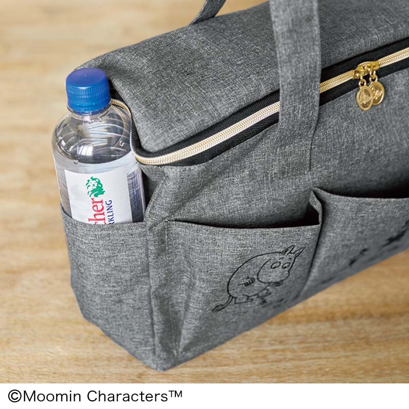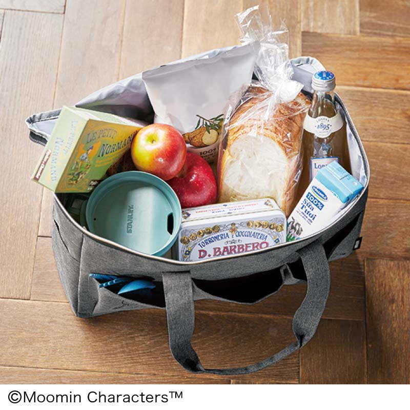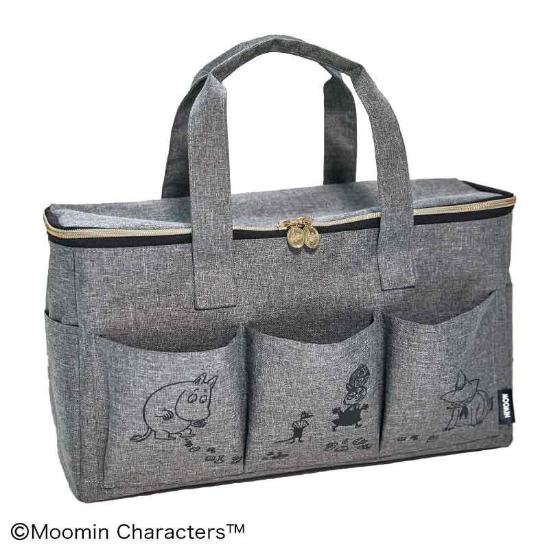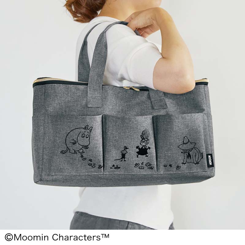 ムーミンやリトルミイ、スナフキンがプリントされた、大人のためのピクニックバッグ。