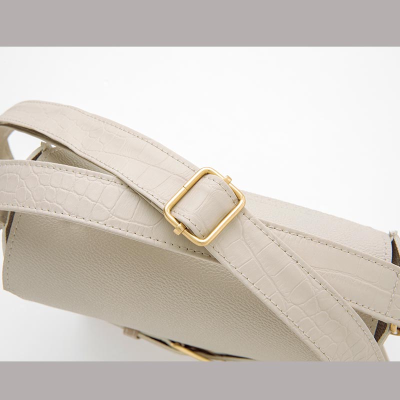 ストラップはアジャスターで好みの長さに調節可。こちらにもクロコダイル柄を型押し!