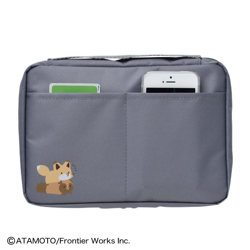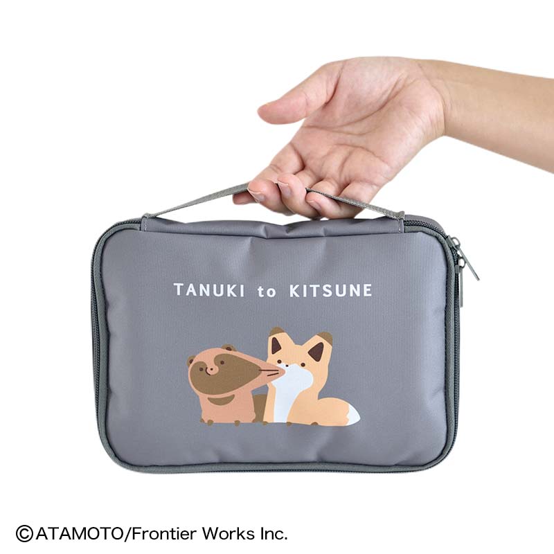 タヌキとキツネのなかよしイラストがかわいい整理上手ポーチができました。