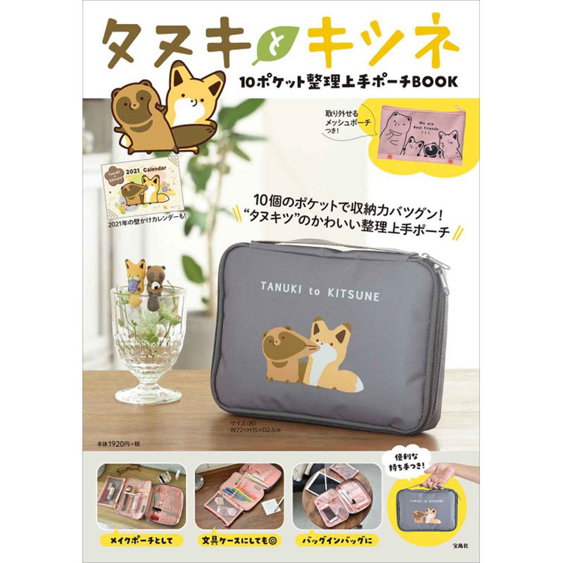 タヌキとキツネ 10ポケット整理上手ポーチBOOK