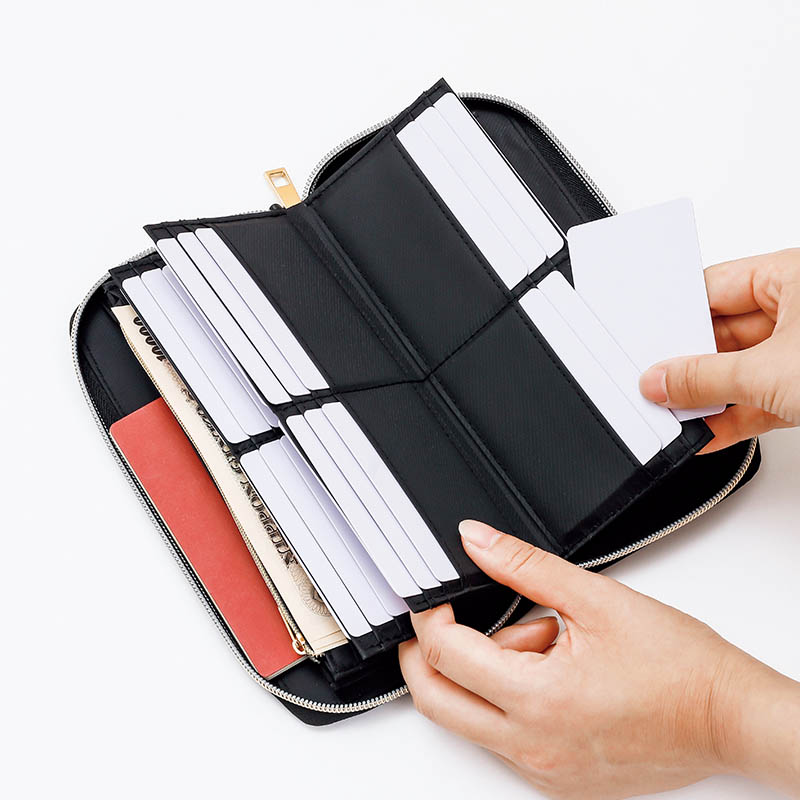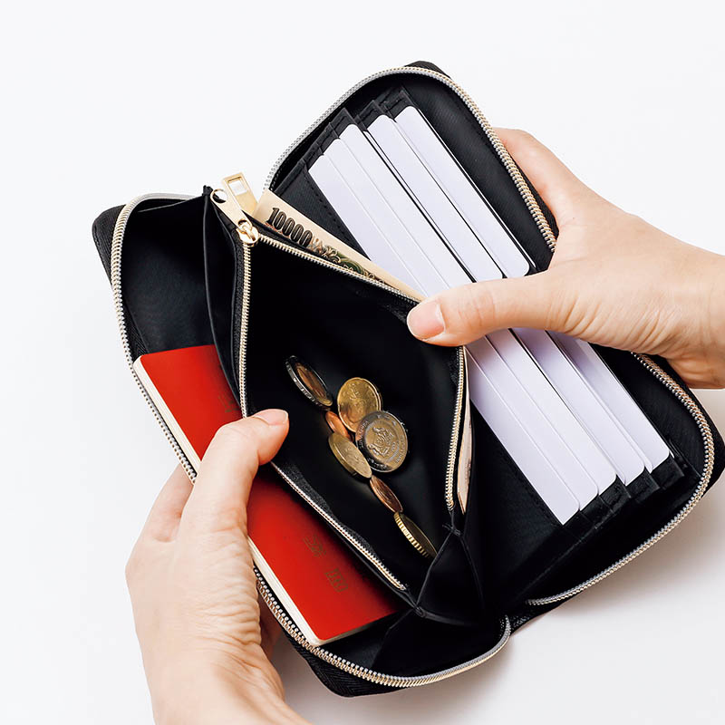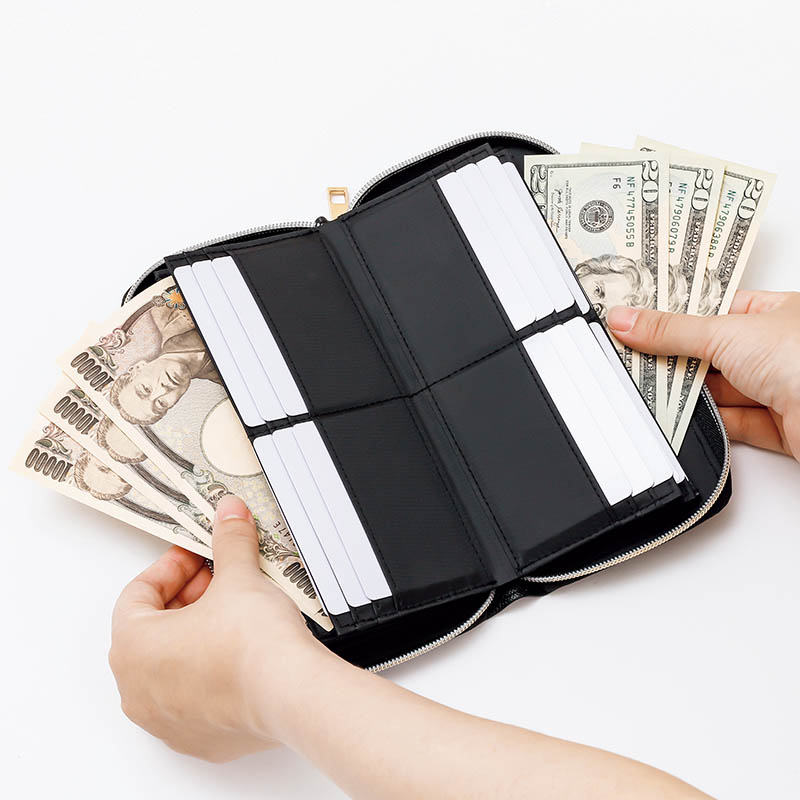 なんと36枚ものカードを収納し、パスポートまで入るビッグサイズ。