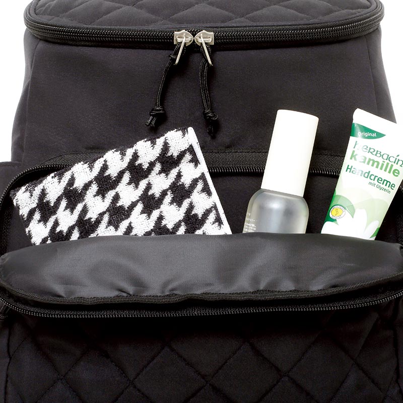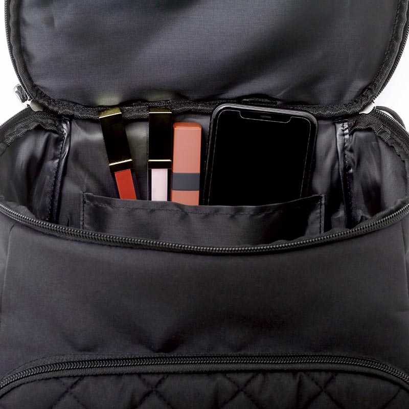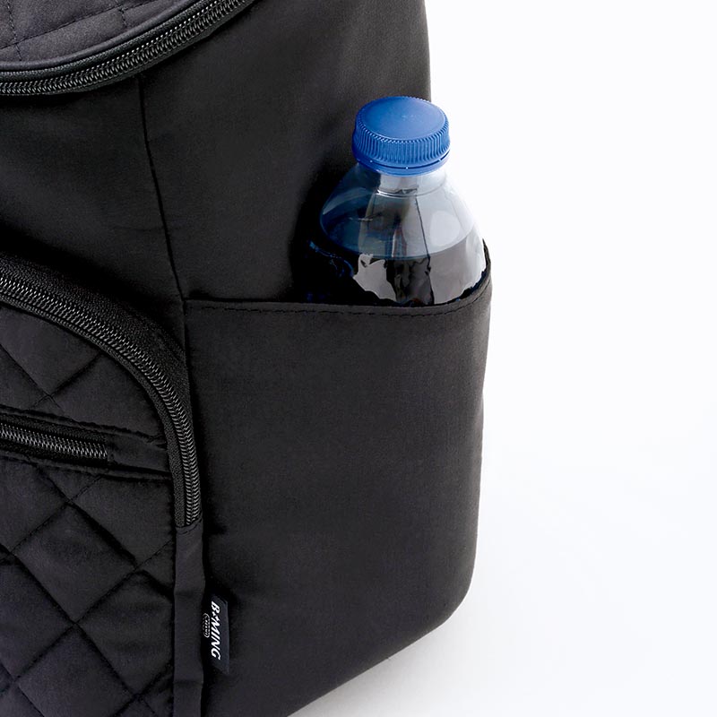 ダブルジップでがばっと開くメイン収納や両サイドのポケット、荷物が整理できる2層式のフロントポケットなど、使いやすいこだわりが満載。撥水加工生地なので雨の日も安心です。ぜひ毎日のおでかけから通勤・通学まで、さまざまなシーンでお使いください。