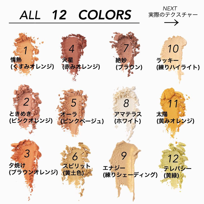 ●パレットの色は、オレンジカラーを中心に、オレンジカラーを引き立てる色もラインナップ