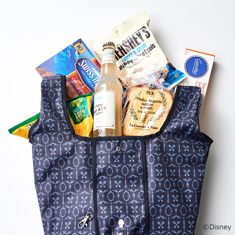 ファン待望の「式典服」をモチーフに、「鏡」と「マジカルキー」を総柄であしらったオリジナルデザイン。カラーはイグニハイド寮をイメージ。アクセサリー展開でも話題になった、インスパイア元作品のヴィランズのモチーフを象ったオリジナルチャームをシルバーカラーでオン。持ち運びに便利なポケッタブルタイプで、バッグに引っ掛けておけるカニカンのほか、撥水・抗菌加工を施すなど機能性にも優れたエコバッグです。デイリーのお買い物はもちろんコンビニでのお買い物にちょうどいい便利サイズに設計しました。