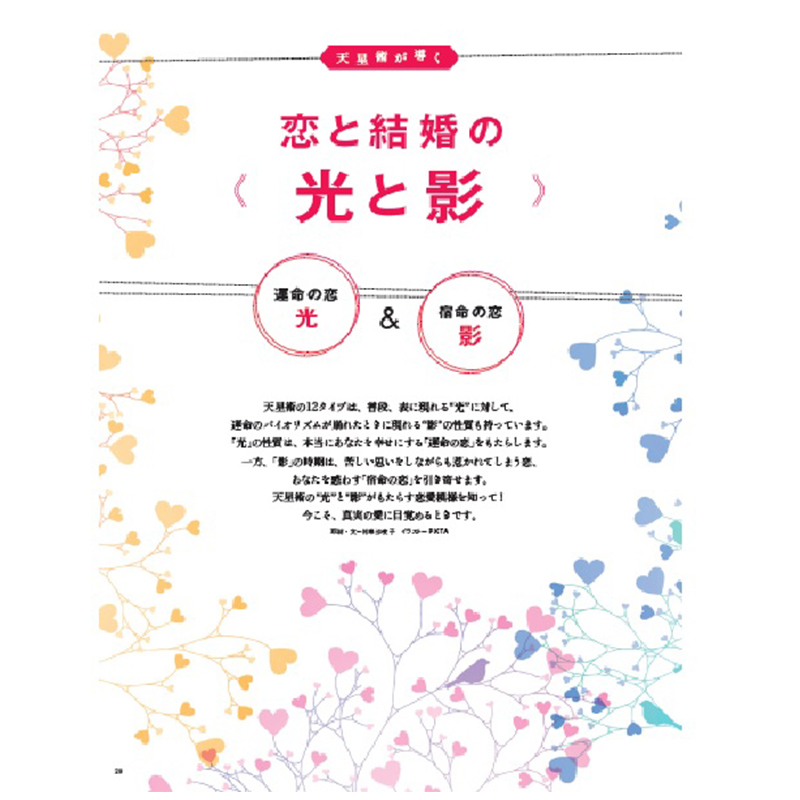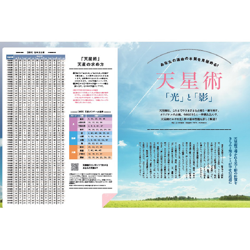 すでに自分の天星をご存知じの方も、初めて入門される方も皆様に少しでも楽しんでいただけるよう、今回は天星術の“光”と“影”をテーマに、光と影の世界や五感、色、水、石、そして2021年の開運アクションなどをまとめさせていただきました。