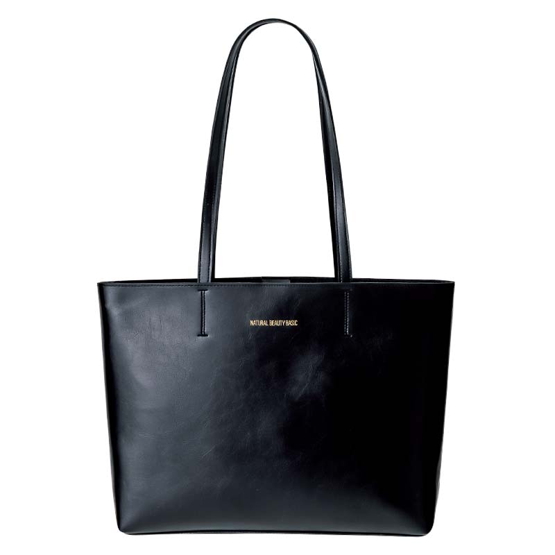 あらゆるシーンで大活躍間違いなしの黒いレザー調トートバッグ。