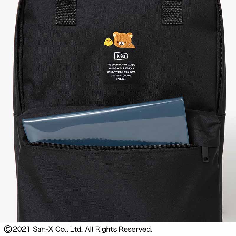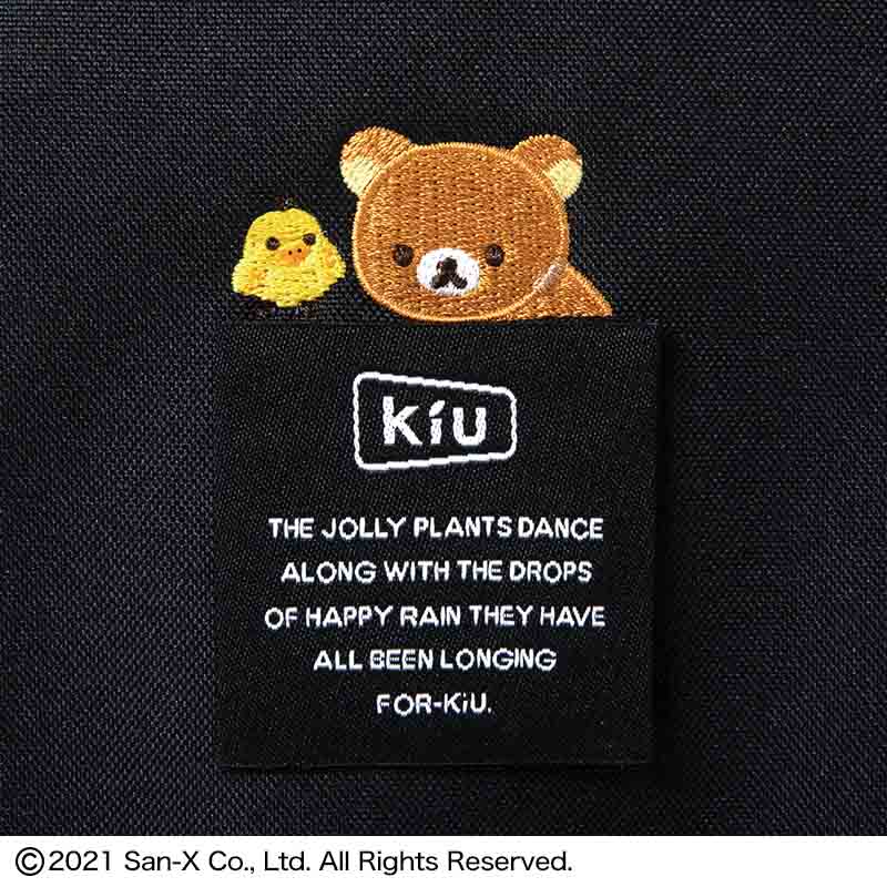 KiUの公式ロゴタグからリラックマがひょっこり出ているおちゃめなデザイン。