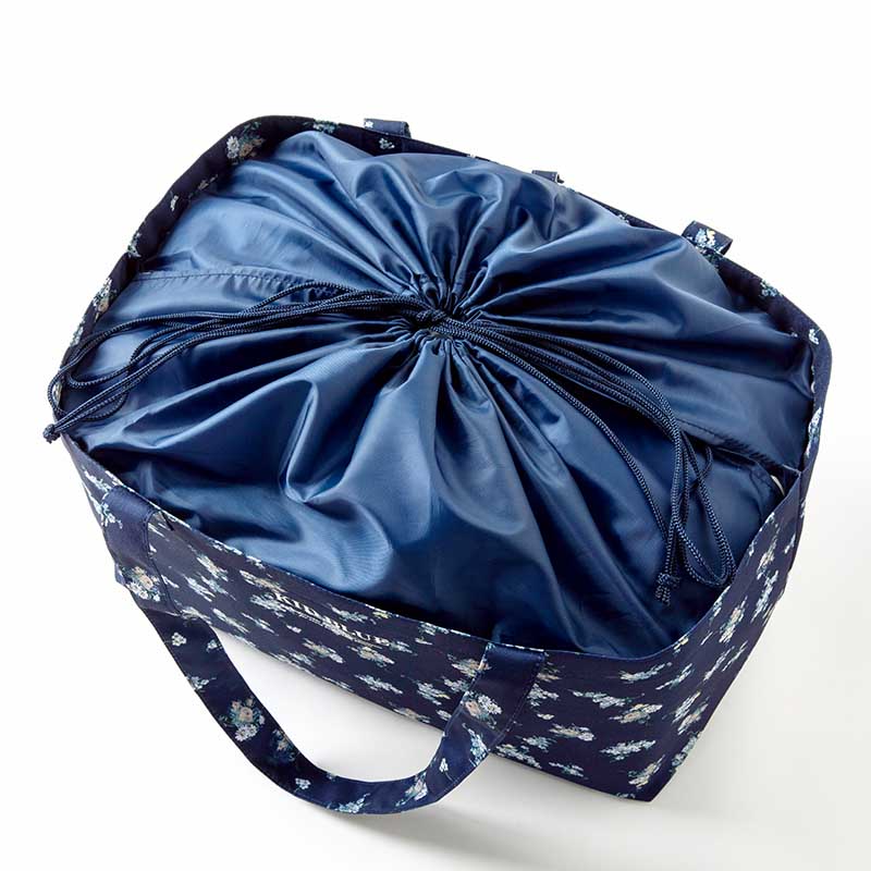 小花柄にネイビーの巾着カバーが大人可愛いデザインです。
