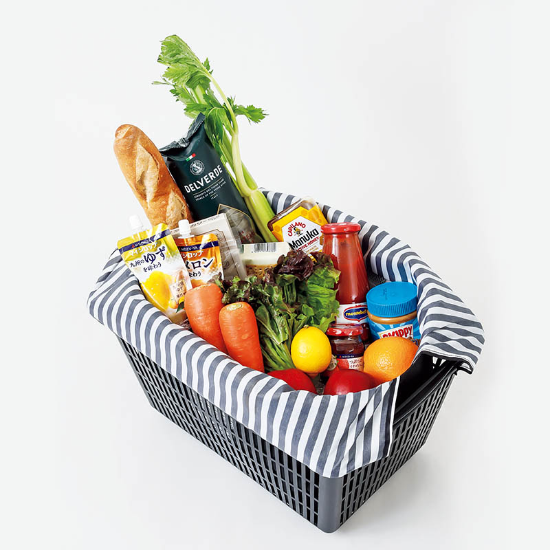 保冷機能付きのショッピングバッグはあらゆるスーパーのレジかごにフィットし、たっぷり入るビッグサイズ。あらかじめレジかごにセットしておくと、袋詰めの手間を完全省略できます。
