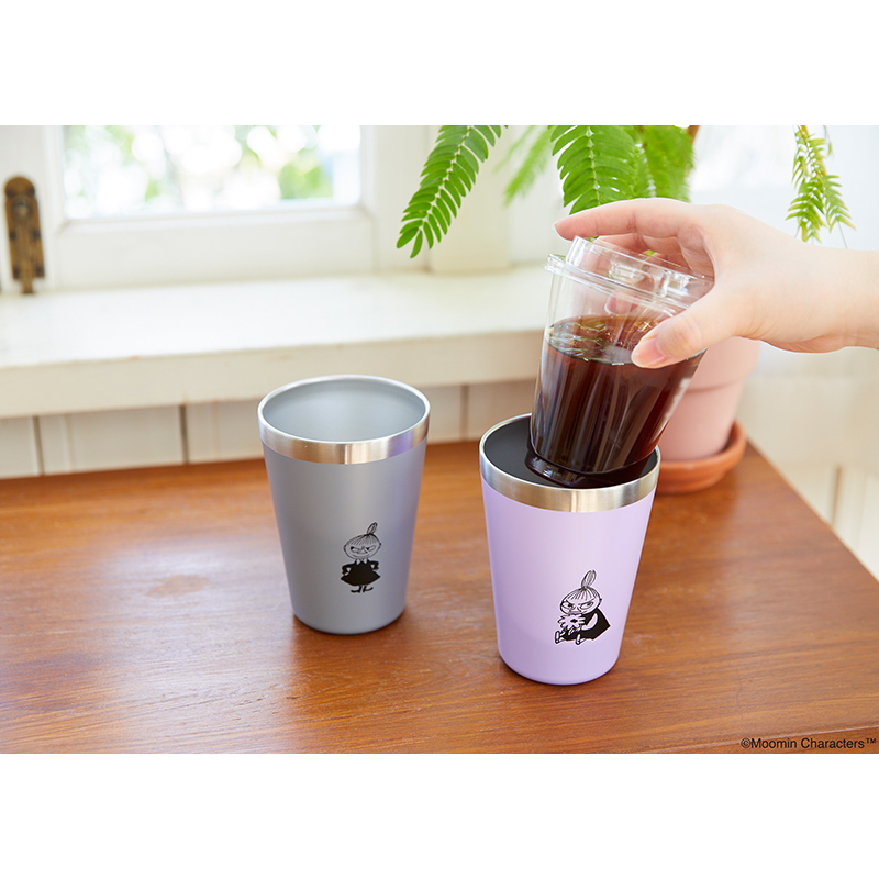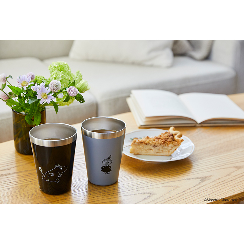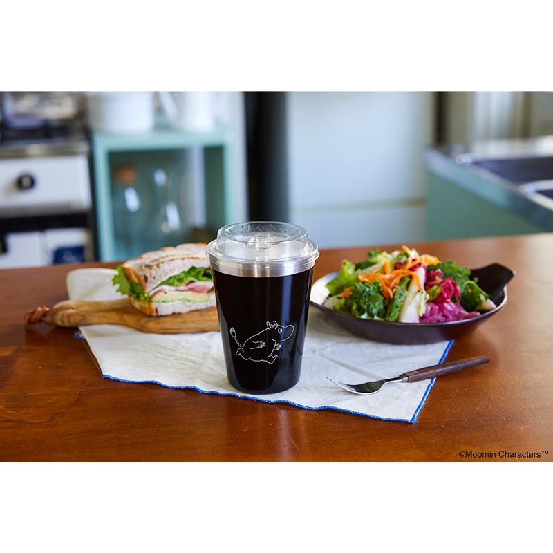 カップドリンクをそのまま入れることができ、真空断熱構造でおいしい温度が長持ちします。結露しないので、デスク回りが濡れてしまう心配もなし。もちろんタンブラーに直接飲み物を入れて使用することも可能で、HOT & COLD兼用。シックなブラックに、ムーミンのイラストがプリントされた、シンプルで大人かわいいデザインもうれしい! 毎日のティータイムやデスクワークに、ドライブにと、さまざまなシーンで大活躍してくれるタンブラーです。
