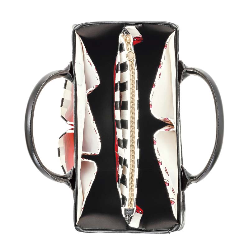 トートの内ポケットには小さめのローズを総柄であしらい、中まで可愛い気分の上がるデザインです。