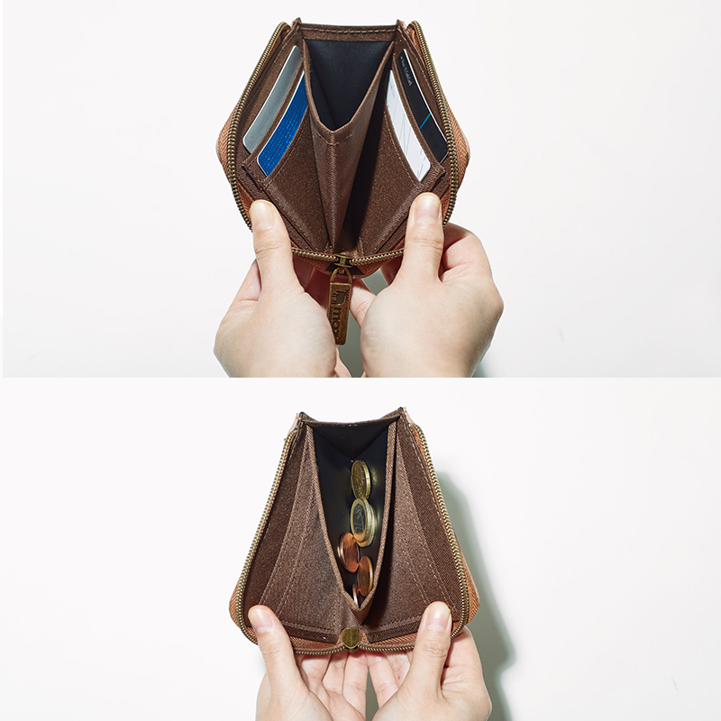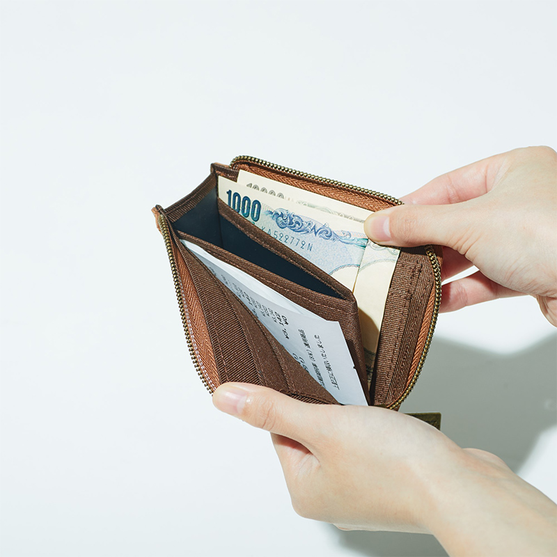 コインポケットにはあえてファスナーをつけず、見やすくサッと出し入れできる形に。