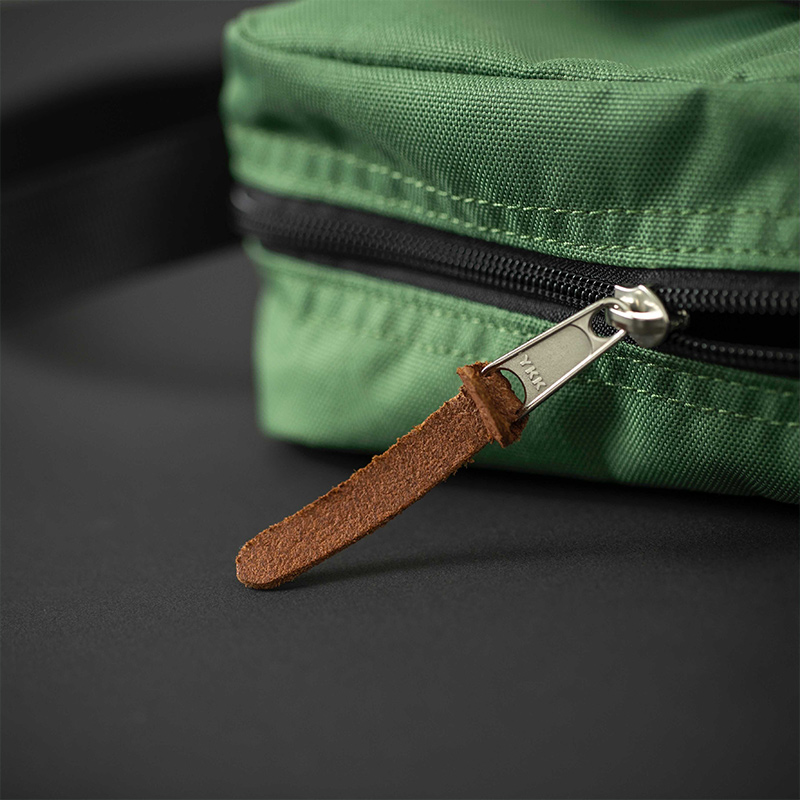 純正品と同じ本革の引き手やロゴラベルなど、細部までこだわりが詰まったアイテム