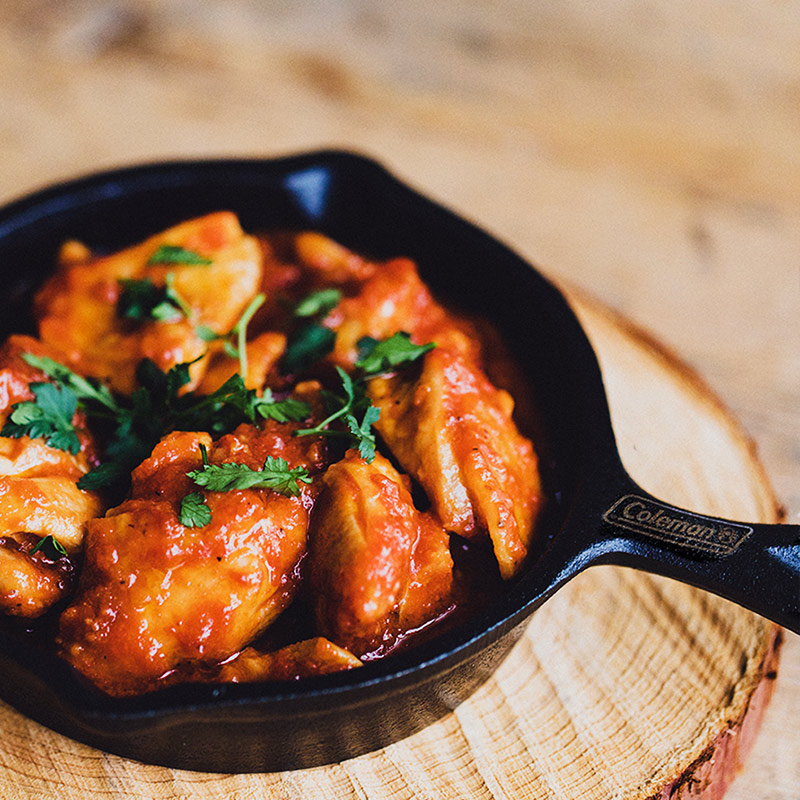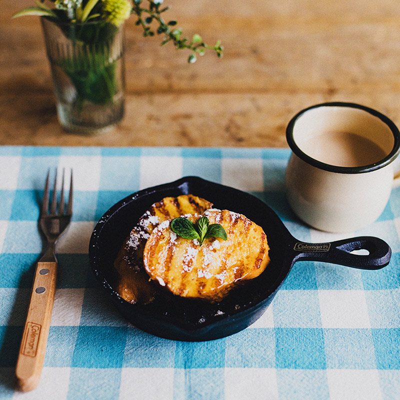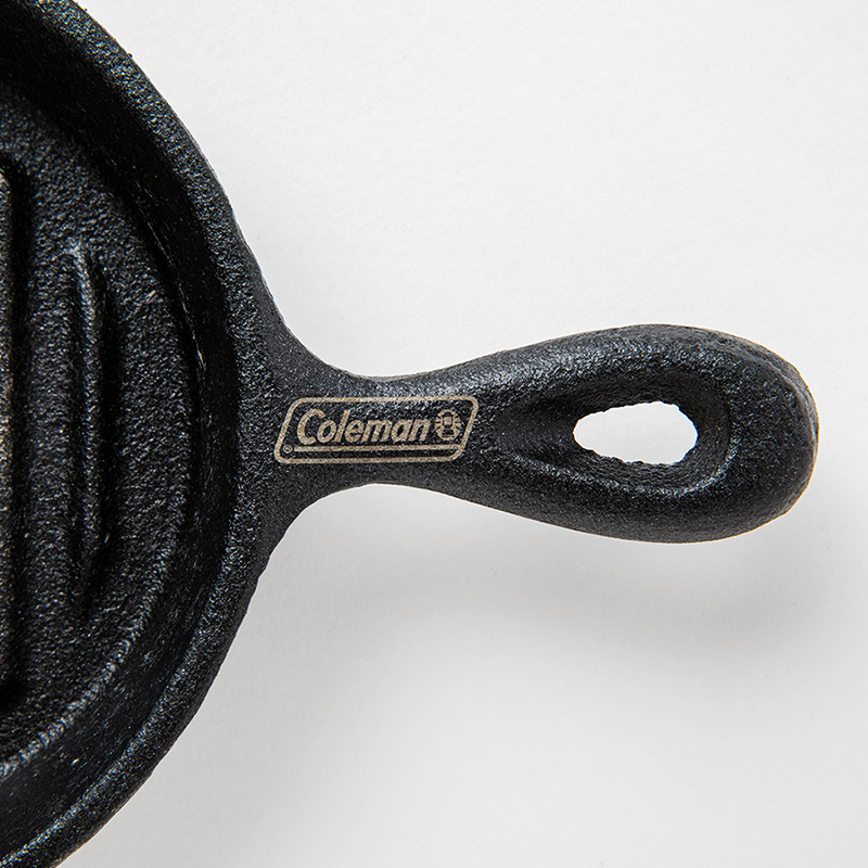 スキレットの持ち手には「Coleman」の公式ブランドロゴの刻印。写真映えも抜群です。