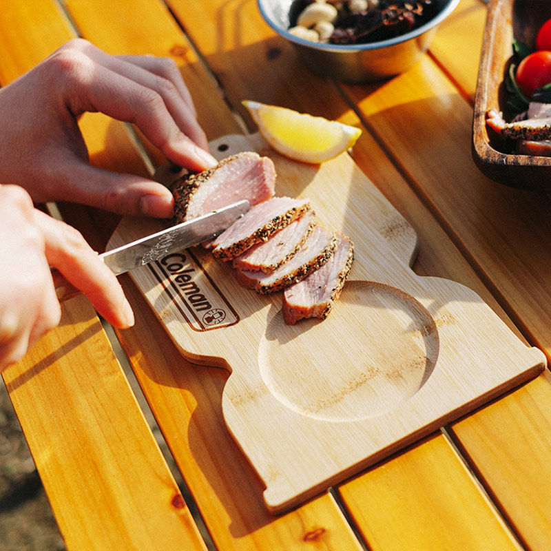 カッティングボードの形はコールマンのランタン型! ほかでは手に入らない特別なデザインです。