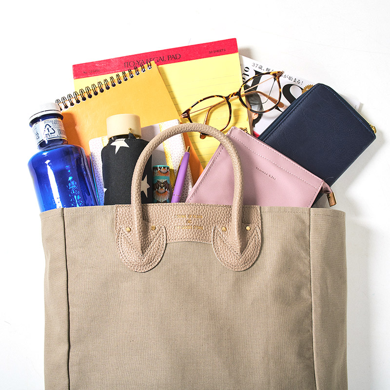 A4サイズや大判雑誌もラクラク収納。マチもたっぷりなので、メインバッグとして、サブバッグとして、どちらでも使えます。フェイクレザーの部分使いや箔押しロゴ、内タグなど、ブランドらしさを追求した高級感たっぷりなデザイン。スマホやリップなどを入れておける内ポケット付きで小物の収納もばっちりです。