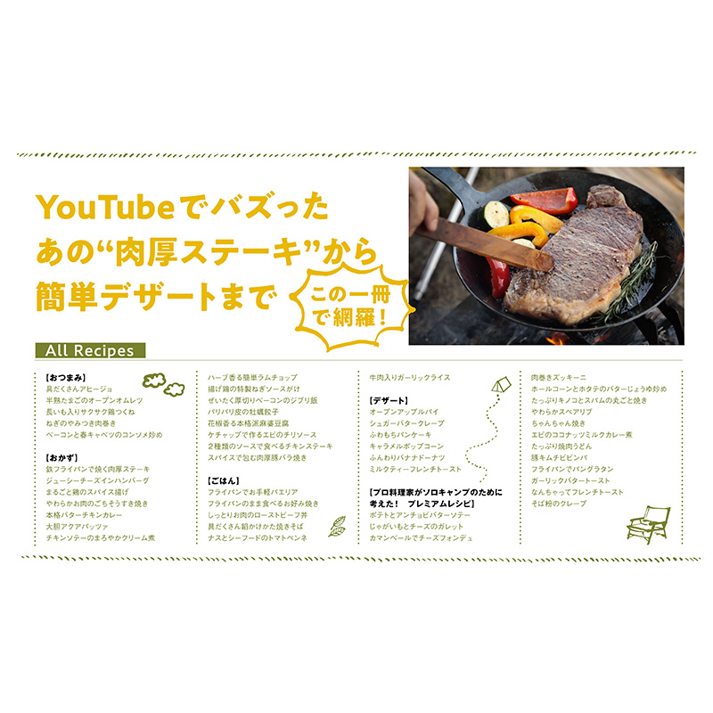 大人気ソロキャンYouTuber愛用! 鉄フライパンひとつでお肉にお魚、デザートまで