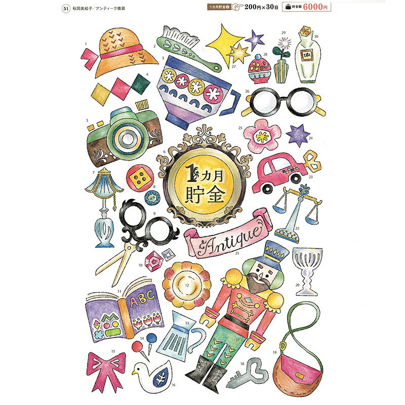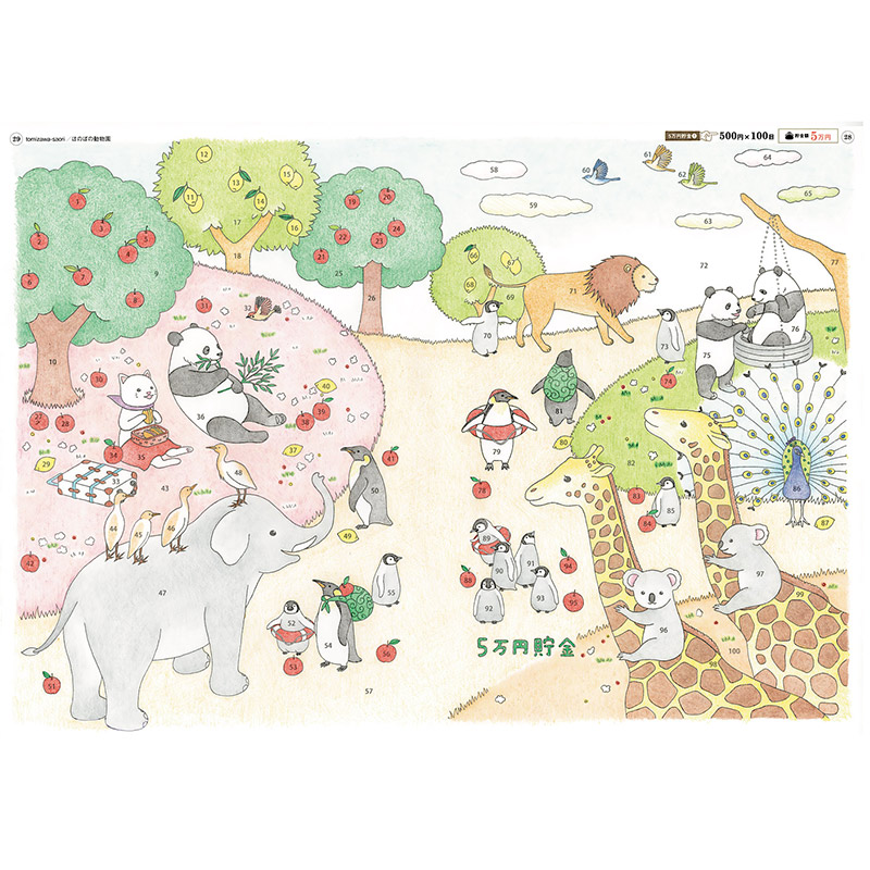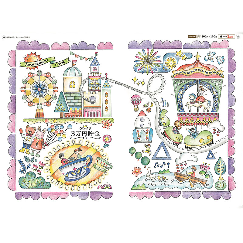 「1日○円」と決められた小銭を貯金箱に入れて、ぬりえで楽しく記録していく……。1冊ぬり終えれば、100万円が貯まります♪ インスタグラムで火が付いた「ぬりえ貯金」を、手持ちの色鉛筆やお気に入りのペンで、手軽に始めてみませんか。人気イラストレーター陣による書きおろし貯金シートをたっぷりお届けします。巣ごもりでやる人が急増中の「0円DAY」の達成表として使ったり、ダウンロードしてiPadで塗ったり。工夫次第でいろんな楽しみ方ができる、ダウンロードサービス付きです。