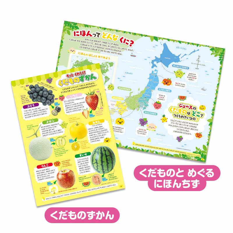 誌面では、今回の付録の飲み物の材料となる果物は日本全国のいろんな場所でつくられているよという流れから、日本ってどんなところ? 日本にある川の長さは? など、地図から日本を知ることができる、子どもたちが楽しみながらはじめて地理にふれられる1冊となっています。