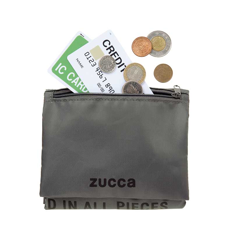 小銭やカードが収納できるポケット付きで、これひとつでお買い物に出かけられます。