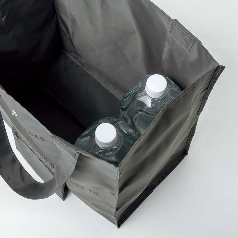 2Lペットボトルが2本並ぶ大きなマチ。お買い物だけでなくピクニックなどにも活躍。