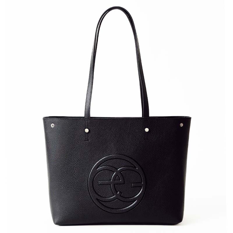 EGOISTのegロゴが大きくエンボス加工されたレザー調トートバッグは、