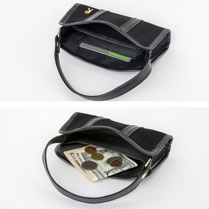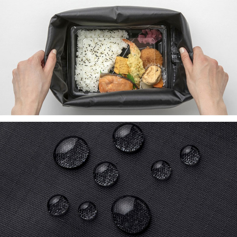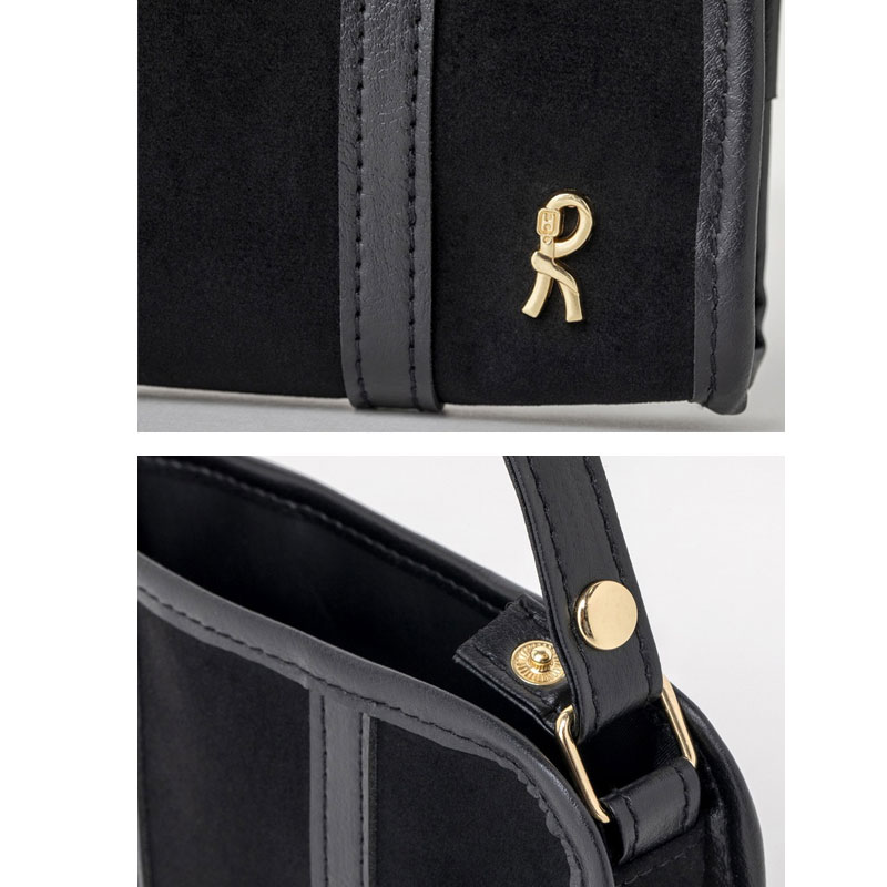 アイテムは、ショッピングバッグとミニバッグ型ポーチの豪華2点セット。バッグは、ベルトのトロンプルイユが効いた上品かつリッチなデザイン。丈夫なリップストップ生地に撥水抗菌加工で機能性も抜群。バッグに見立てたミニポーチは、ベルベット調のオールブラック生地にRロゴチャームがシックなデザイン。内側にはカードや小銭を収納できるポケットが付き、スマホも入るサイズなので、これひとつでお買い物に出られます。ポーチのハンドルは取り外せるので、お手持ちのバッグへ取り付けOK。さらにバッグは折りたたんでポーチに収納可能です。