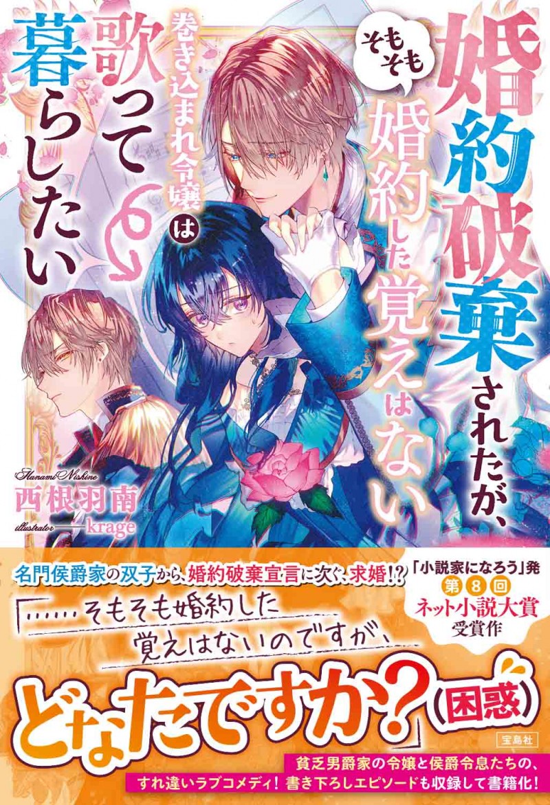 貧乏男爵令嬢のノーラ・クランツは、夜会でアランという見知らぬ青年貴族から、突然、婚約破棄を言い渡される。「誰? 婚約破棄って? そもそも婚約した覚えがないのだけれど」と内心で動揺するも、今度はその貴族と同じ顔をしたエリアスと名乗る青年が、ノーラと婚約したいと詰め寄ってきて――? 街では「紺碧の歌姫」と呼ばれ、ゆくゆくは歌を仕事にして街で暮らそうと思っていたノーラは、本人に秘密にされていた婚約によって、名門貴族カルム侯爵の双子たちとの婚約騒動に巻き込まれていく!