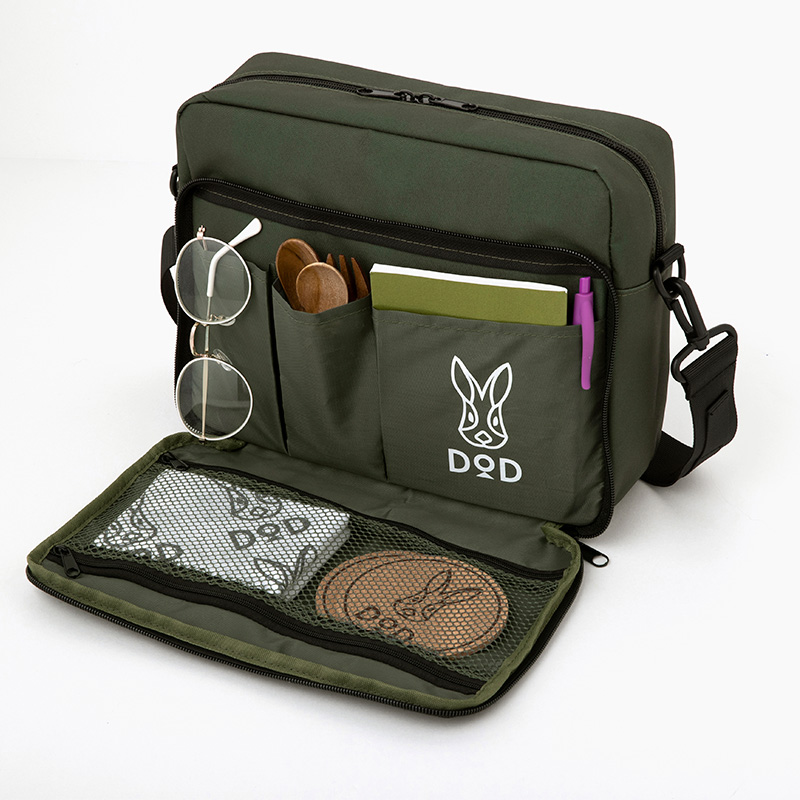 本誌限定アイテムはポケットがたっぷり付いた多機能ショルダーバッグ。この一見シンプルなバッグ、フロントポケットを180度開き、背面ポケットからフックを取り出すことで、なんとハンギングポーチに変身! ポールなどに引っかけることで、吊るせるポーチとしても使えるんです。アウトドアシーンではもちろん、旅行の際にアメニティを入れたり自宅でコスメポーチとして使ったりと、幅広いシーンで活躍すること間違いなし。本誌ではキャンプビギナーに向けたおすすめギアの紹介など、DODの最新情報満載でお届けします。