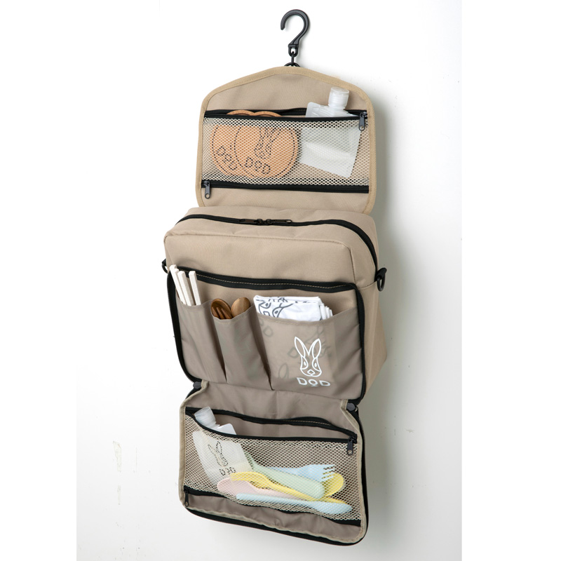 本誌限定アイテムはポケットがたっぷり付いた多機能ショルダーバッグ。この一見シンプルなバッグ、フロントポケットを180度開き、背面ポケットからフックを取り出すことで、なんとハンギングポーチに変身! ポールなどに引っかけることで、吊るせるポーチとしても使えるんです。アウトドアシーンではもちろん、旅行の際にアメニティを入れたり自宅でコスメポーチとして使ったりと、幅広いシーンで活躍すること間違いなし。本誌ではキャンプビギナーに向けたおすすめギアの紹介など、DODの最新情報満載でお届けします。