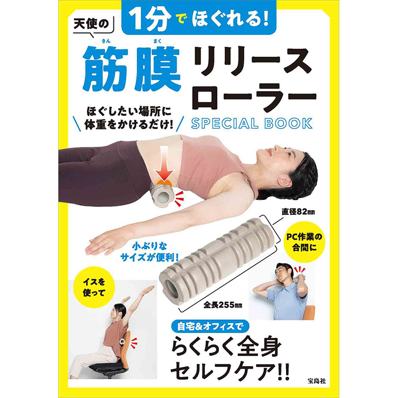 たった1分、気になる部分をローラーに押し当てるだけで、自分の体重で筋膜がほぐれ、体がラクになるのを実感できるでしょう。