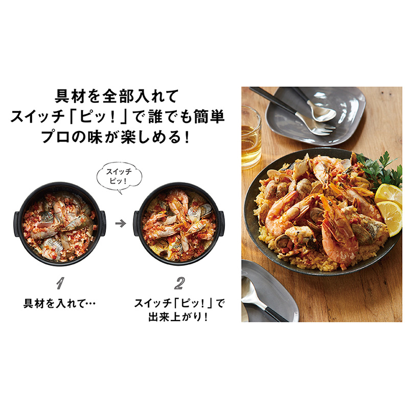 誰が作っても美味しくなる秘密(食材を用意、炊飯器に入れる、スイッチをオンの3ステップ)を解説、使い方、見方を紹介!