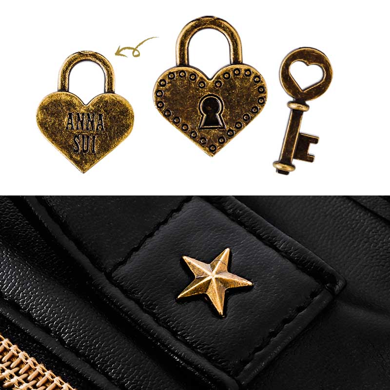ハートを裏返すと嬉しいANNA SUIロゴが。ハンドル付け根の星形スタッズも素敵。