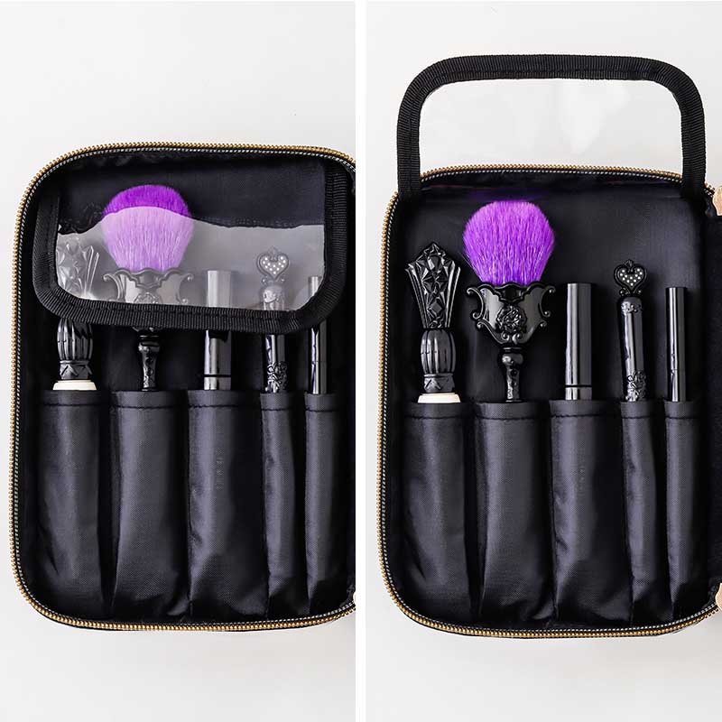 ブラシやマスカラ、アイライナーなど、合計5本を収納できるポケット。